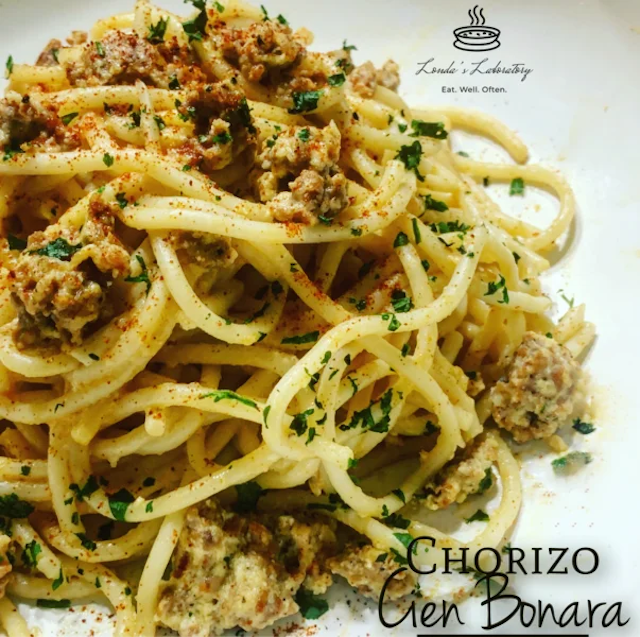 Commemorating 100 days of no outside food. This Chorizo Cien Bonara was born!